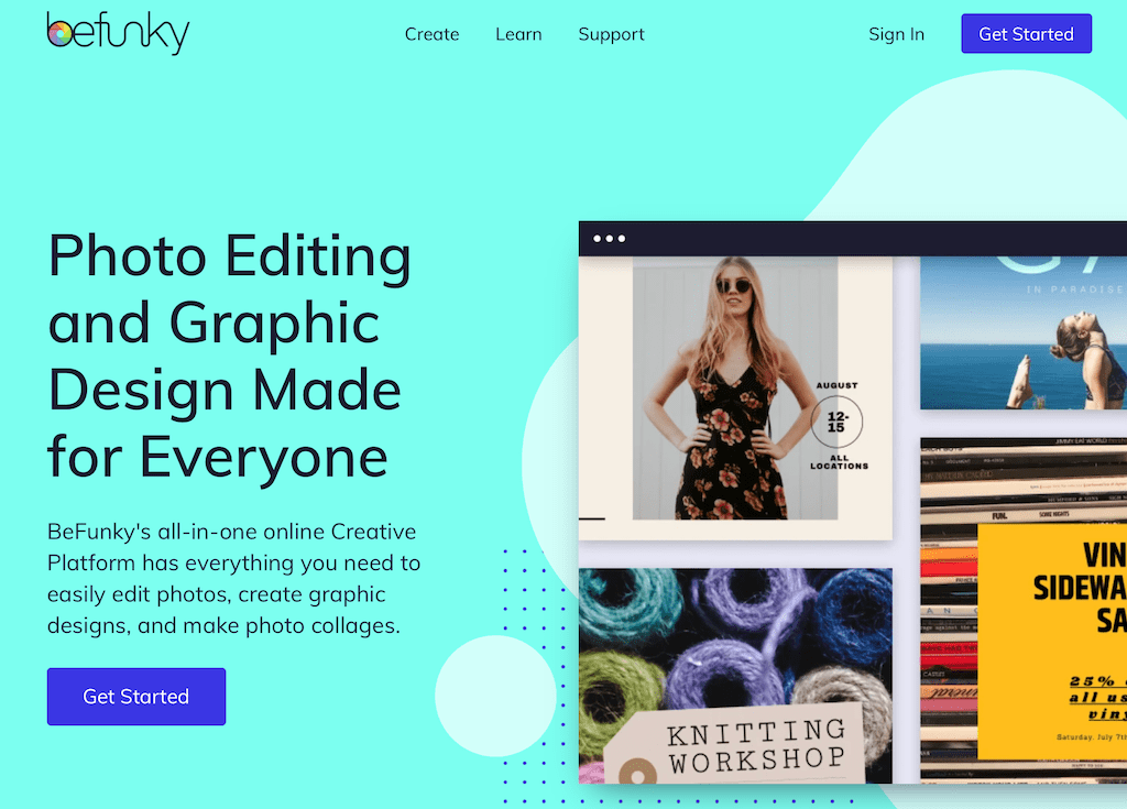 Similar a Photoshop però amb certes peculiaritats, l’editor de fotos del BeFunky té moltes opcions que es poden utilitzar per ajustar i millorar les vostres imatges. L’eina de collage és òbviament per combinar diverses en una sola, mentre que l’eina dissenyador és la que voldreu utilitzar si us trobeu creant continguts per a blogs o per a Xarxes Socials
